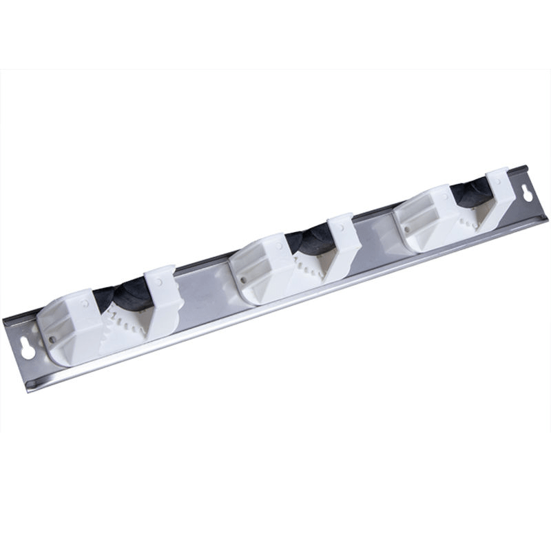 Die Aufhängeschiene mit drei stabilen Haltern bietet eine platzsparende und organisierte Lösung zur Aufbewahrung von Stielen, Mopps und Reinigungsgeräten. Ihre robuste Bauweise sorgt für sicheren Halt, während die ergonomische Anordnung ein schnelles Entnehmen und Verstauen ermöglicht. CleanHouse liefert diese Aufhängeschiene als praktisches Zubehör für eine effiziente und professionelle Reinigungsausrüstung.