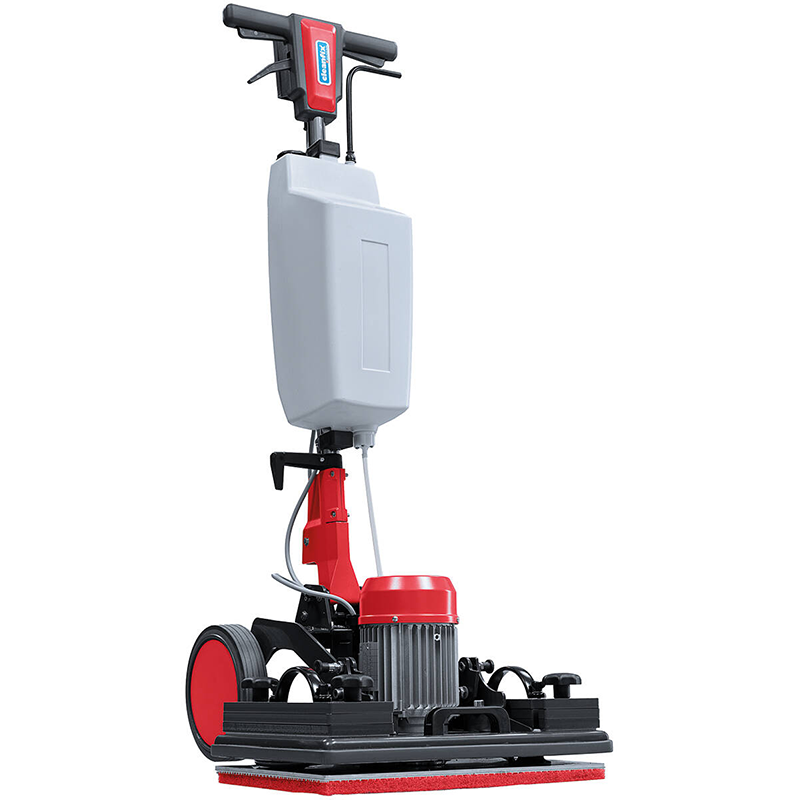Mit dem Gewicht von 69 kg (inkl. Zusatzgewicht) sowie 2720 1/min haben Sie das perfekte Reinigungsergebnis für fast alle Böden (Beton, Naturstein, PVC, Fliesen, Sicherheitsböden sowie Parkett). Sie können nicht nur (tiefen-) reinigen und schleifen, sondern auch Beschichtungen abziehen. Durch die viereckige Konstruktion kommen Sie perfekt in jede Ecke. Unsere patentierte Stielverstellung sowie die grossen Räder für den einfachen Transport sind bedeutende Vorteile. Von Nutzen sind auch die zwei Rasten (750.586 Kit Rastbolzen) auf dem Gehäuse, mit denen Sie entweder die Räder vom Boden abheben um keine Laufspuren zu hinterlassen oder die Deichsel komplett auf den Kopf stellen können um ein maximales Gewicht auf den Boden zu bekommen. Durch gestückelte Zusatzgewichte können Sie das Maschinengewicht perfekt Ihrer Anwendung adaptieren. Stellen Sie den Bürstkopf von der E50x35 Excenter einfach auf und Sie können die Pads bequem wechseln oder die Maschine optimal lagern.